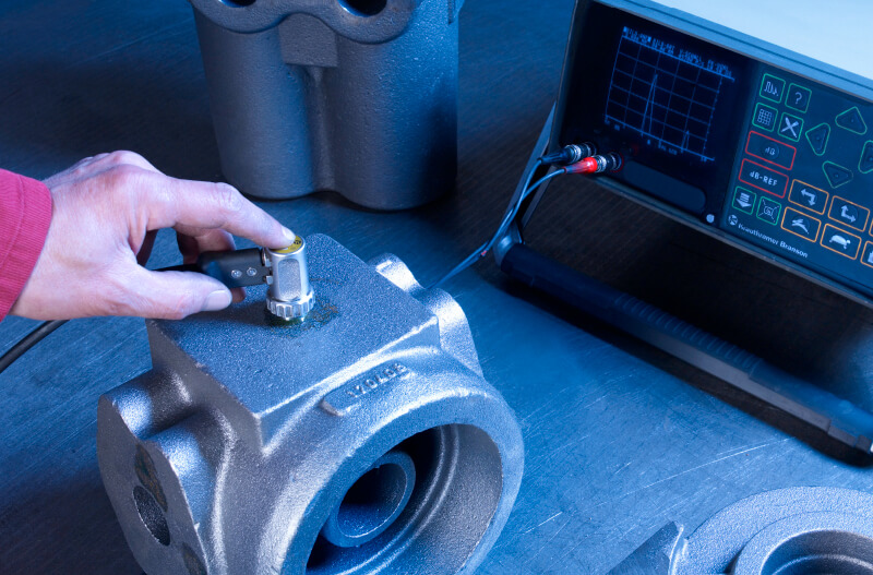 Die Überprüfung der geforderten qualitativen Parameter erfolgt in jeder Produktionsstufe unserer Gießerei in Bayern. Für eine maß- und zerstörungsfreie Werkstoffprüfung stehen modernste Verfahren und Einrichtungen im eigenen Prüflabor für Gusstechnik zur Verfügung.