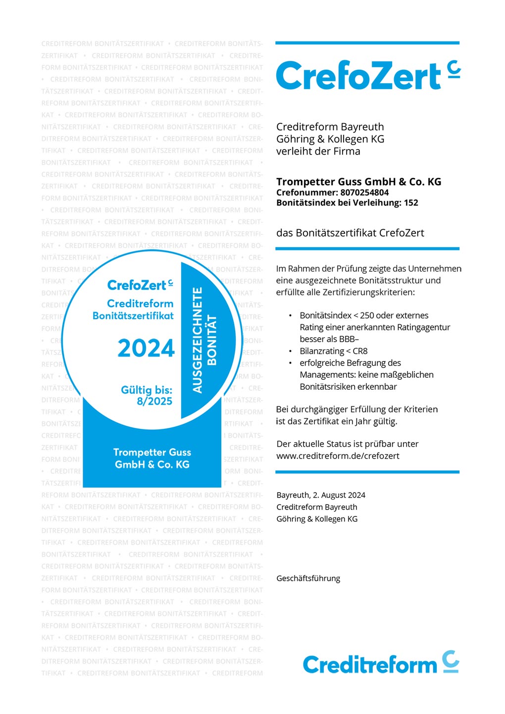 Bitte senden Sie Ihre aussagekräftige Bewerbung an Trompetter Guss GmbH & Co. KG